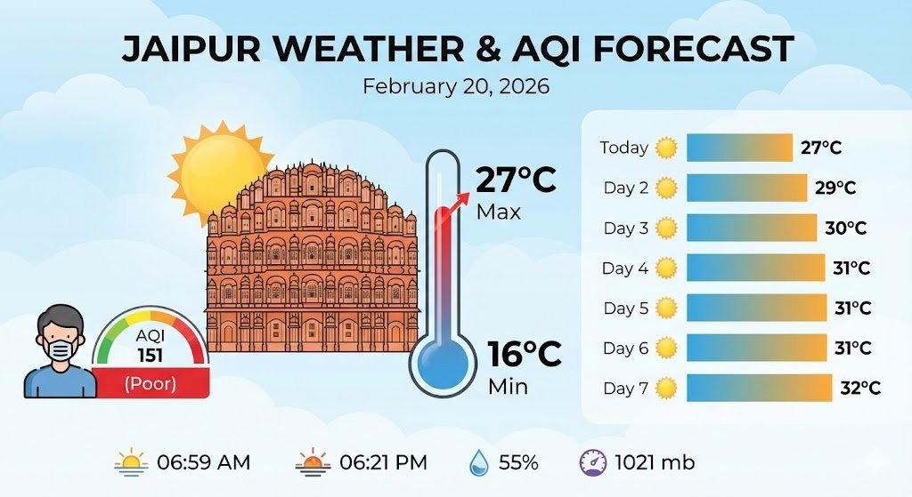Jaipur Weather Update: गुलाबी नगरी में बढ़ने लगा पारा, 32 डिग्री तक पहुंचेगा तापमान, ‘Poor’ श्रेणी में पहुंचा AQI
