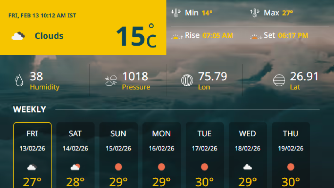 जयपुर (Jaipur News): राजस्थान की राजधानी जयपुर में आज (13 फरवरी 2026) मौसम सुहावना बना हुआ है। गुलाबी नगरी की…