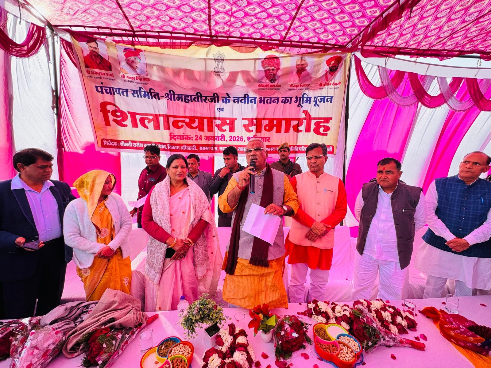 करौली: प्रभारी मंत्री जवाहर सिंह बेढम ने श्रीमहावीरजी में ₹2.12 करोड़ की लागत वाले पंचायत समिति भवन की रखी आधारशिला