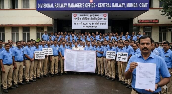 मुंबई (CSMT): मध्य रेलवे के मुंबई डिवीजन में एक अभूतपूर्व स्थिति पैदा हो गई है। 16 फरवरी 2026 को करीब 72 मेल लोको पायलट (Loco Pilot Mail) ने एक संयुक्त आवेदन जमा कर सामूहिक रूप से स्वैच्छिक सेवानिवृत्ति (VRS) की मांग की है। विभागीय रेलवे प्रबंधक (DRM) को संबोधित इस आवेदन में कर्मचारियों ने काम के दमघोंटू माहौल, खराब सुविधाओं और बढ़ते प्रशासनिक दबाव को अपनी इस मजबूरी का मुख्य कारण बताया है।