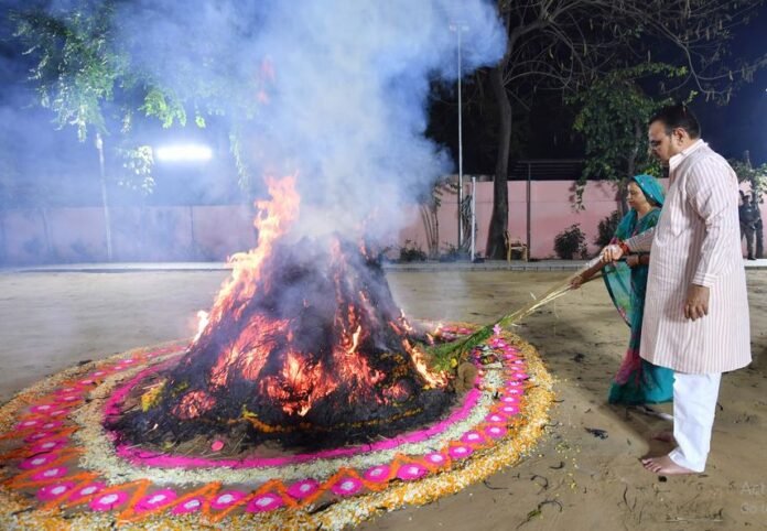 जयपुर। राजस्थान के मुख्यमंत्री भजनलाल शर्मा ने सोमवार मध्यरात्रि के बाद सिविल लाइन्स स्थित मुख्यमंत्री निवास पर पारंपरिक रीति-रिवाज के साथ होलिका दहन किया। इस अवसर पर उन्होंने समस्त प्रदेशवासियों के जीवन में खुशहाली, उत्तम स्वास्थ्य और समृद्धि की मंगलकामना की।