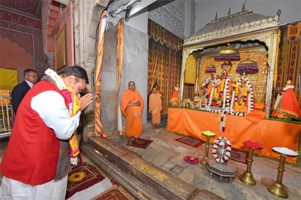 जयपुर: राजस्थान के मुख्यमंत्री भजनलाल शर्मा ने मंगलवार सुबह जयपुर के आराध्य देव श्री गोविंददेव जी मंदिर में शीश नवाया। मुख्यमंत्री ने मंदिर में ठाकुर जी की विधिवत पूजा-अर्चना की और प्रदेश की सुख-समृद्धि, खुशहाली एवं कल्याण की कामना की। दर्शन के पश्चात सीएम मंदिर परिसर स्थित जय निवास उद्यान पहुँचे, जहाँ उन्होंने एक विशाल कलश यात्रा का शुभारंभ किया।