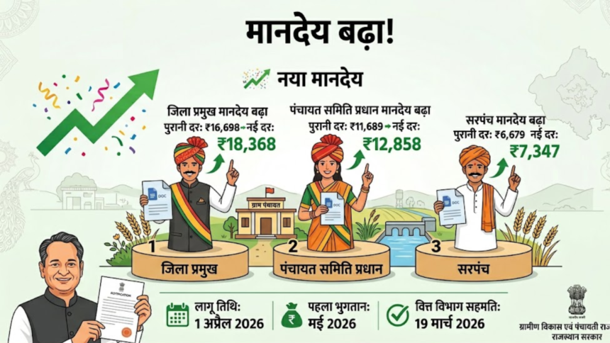 राजस्थान सरकार ने पंचायती राज संस्थाओं के निर्वाचित जनप्रतिनिधियों को नए वित्तीय वर्ष से पहले एक शानदार तोहफा दिया है। ग्रामीण विकास एवं पंचायती राज विभाग ने मुख्यमंत्री श्री भजनलाल शर्मा द्वारा बजट 2026-27 पर चर्चा के दौरान की गई घोषणाओं को लागू करते हुए मानदेय में बढ़ोतरी की आधिकारिक अधिसूचना जारी कर दी है। इस फैसले से प्रदेश के हजारों ग्रामीण जनप्रतिनिधियों को सीधा आर्थिक लाभ मिलेगा।