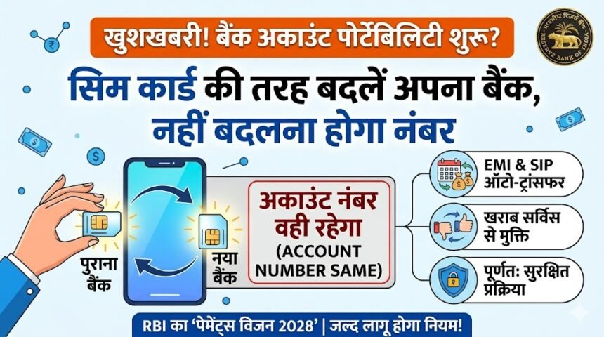 भारतीय रिजर्व बैंक (RBI) देश के बैंकिंग सिस्टम को पूरी तरह से ग्राहक-केंद्रित बनाने की दिशा में एक क्रांतिकारी कदम उठाने जा रहा है। जिस तरह आप अपना मोबाइल नंबर बदले बिना एक टेलीकॉम कंपनी से दूसरी कंपनी में स्विच (पोर्ट) कर लेते हैं, ठीक वैसी ही सुविधा अब आपको अपने बैंक खाते के लिए भी मिलने वाली है।